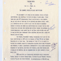 This talking paper was created for Dr. Benjamin L. Perry, Jr for a presentation on the economic crisis of Black institutions. While this speech was meant to represent all historically Black institutions, Perry discussed the plight of all higher education establishments due to a lack of proper financial support and included FAMU as his main example.