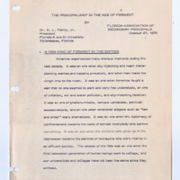 Dr. Benjamin L. Perry, Jr delivered this speech to the Florida Association of Secondary Principals in 1970. In it, Perry offers a historical snapshot of the current events of the time, i.e., the moon landing, civil unrest, and political assassinations, to discuss the future of education amongst its leaders.