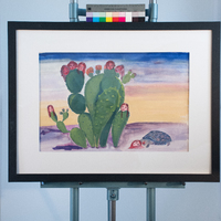 Toussaint's painting, "Prickled," pushes back against the notion that women's role is limited to being nurturers. In her own words, her "creative perspective is rooted in a sensitive and feminine lens—one that challenges the common reduction of femininity to gentleness and passivity." After graduating from Texas Southern University, Toussaint started teaching art in a Houston-area middle school.