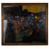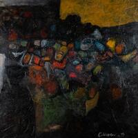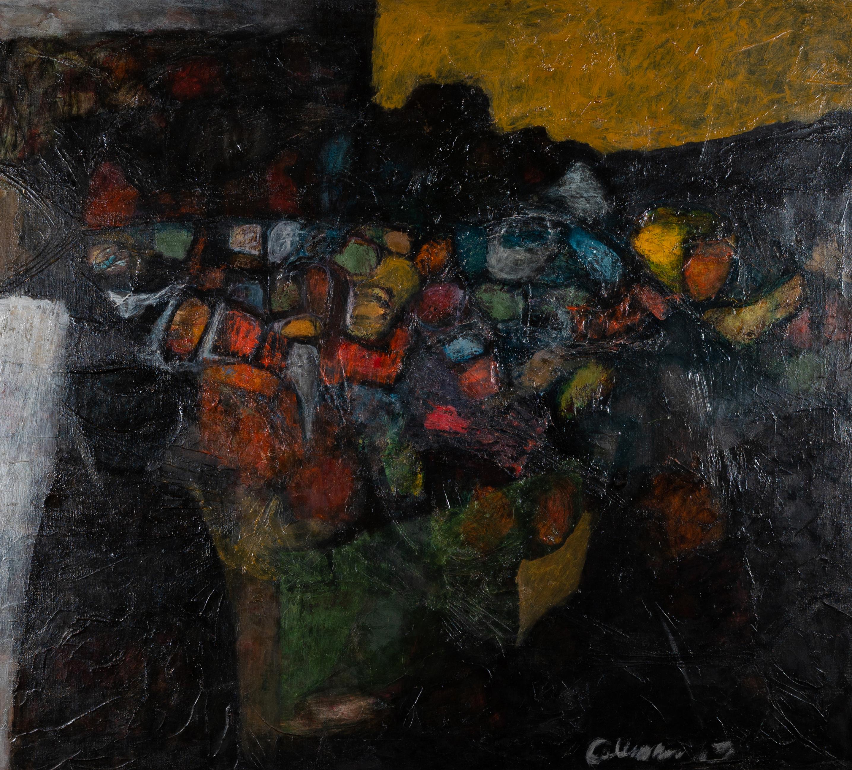Floyd Coleman was an art historian, educator, and painter in Washington, D.C. Garden is an abstract depiction of its namesake. Coleman uses splotches of vibrant colors on top of a black background.