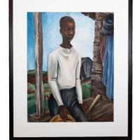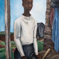 Charles Henry Alston was a Harlem Renaissance painter, sculptor, illustrator, muralist, and teacher. Farm Boy is a portrait of a young Black boy holding a hat and tool on a farm. Alston photographed Black Southern life in North Carolina when he visited rural and farm sites with a Farm Security Administration inspector.