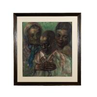 Romeyn van Vleck Lippman was a 19th-century painter and educator. Revival depicts three figures standing in a position of grief and consolation. The central Black boy is looking down grievingly, a Black woman is behind him with an averted gaze, and to his left is a veiled elderly White woman gazing at him while holding his chest.