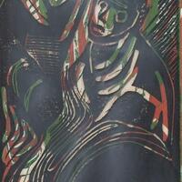 Charles W. Stallings was a painter, printmaker, sculptor, and educator from Gary, IN. Swamp Fever is a print of two swamp creatures. Stallings uses stark black, red, and green lines and shadows to create cartoon-like renditions of swamp creatures with shocked expressions.