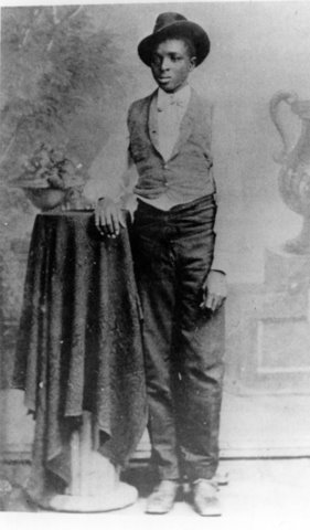 Black and white image of young George Washington Carver in the 1870s.