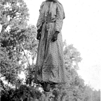 Black and white image of the lynching of Laura Nelson who was hanged for killing a white deputy sheriff.