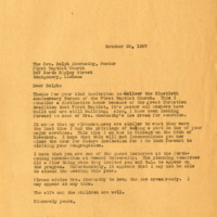 A letter from Chaplain to Rev. Ralph Abernathy expressing his regret that he will not be able to be the guest speaker for First Baptist Church nintieth celebration.