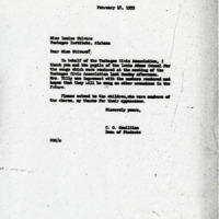 A thank you letter for Charles Gomillion on behalf of the Tuskegee Civic Association thanking Miss Stivers for the songs that were played at the past TCA meeting.