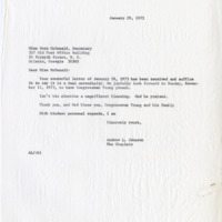 A letter from Chaplain Johnson to Miss Dora McDonald expressing joy that Congressman Andrew Young will speak at Tuskegee.
