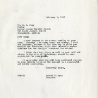 A letter from Chaplain Wynn to Dr. Martin Luther King Jr. on onion paper, offering support to the King after their family home was bombed and offering unwavering support for the Montgomery Bus Boycott.