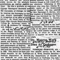 "Dr. Monroe N. Work, Director Emeritus of Tuskegee's Dept. of Records & Research, Dies"