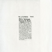 Newspaper article about the new director for Tuskegee's Department of Records and Research, Ralph N. Davis. Mentions Monroe N. Work's retirement and that Davis worked as Work's assistant for many years.