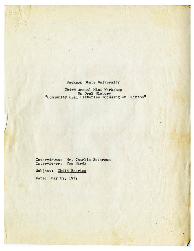 Mr. Peterson was born in 1891 and was a lifelong resident of Clinton. He talks about his parents being born into slavery; the Clinton Riot; his Christian faith; and his education, specifically giving an overview of the curriculum of his school at the turn of the century.