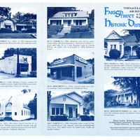 A brochure for a walking tour of the Farish Street Historic District, containing a tour map and pictures of significant homes, churches, nightclubs, and other buildings in the District.