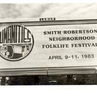 Two photographs of brochures for the Smith Robertson Neighborhood Folklife Festival, April 9-11, 1983. The festival was a one-time grant sponsored event held on the grounds of the Smith Robertson Museum to celebrate the rich history and culture of the Farish Street Historic District.