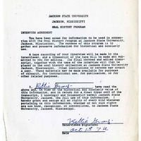 Betty Gray was born in Jackson, Mississippi, in 1903. She remembers the "Good Old Days" as a child growing up in Jackson when school days, games, and family all made for pleasant times. She also talks about her memories of the Farish Street District as well as Emmett Till and Martin Luther King, Jr. The transcript is edited with handwritten notes.