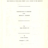 Rev. Phillip Brown was a minister at Lynch Street C.M.E. Church from 1952-1953. The purpose of the interview was to learn about the function of the Lynch Street C.M.E. Church in the community. Rev. Brown talks about being a life-long member of the church since its inception. The transcript is edited with handwritten notes.