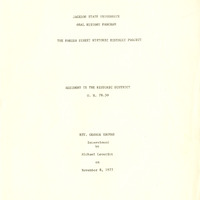 Rev. George Thomas was a pastor at a church in Terry, Mississippi, and also worked as a contractor and carpenter. He possessed several plans from early buildings which he built in the Farish Street District. He talks about the construction of new roads and buildings as Jackson converted from dirt roads and horses to a more metropolitan space.