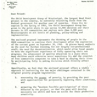 A United States Government Memorandum from Lynn Kirk to The Task Force members working in four different areas of Mississippi with the subject “Head Start funding ground rules.” The memo details how to save money so Head Start can operate with $30 million of a needed $39 million in funding without having to reduce the number of children served.