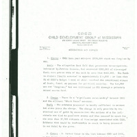 In this memo from Child Development Group of Mississippi (CDGM), the organization replies to charges made by Senator John Stennis and others. These accusations include an alleged $500,000 financial discrepancy that turned out to be only a $15,000 clerical error. CDGM responds to the charge that the organization has ties with Black Power activists.