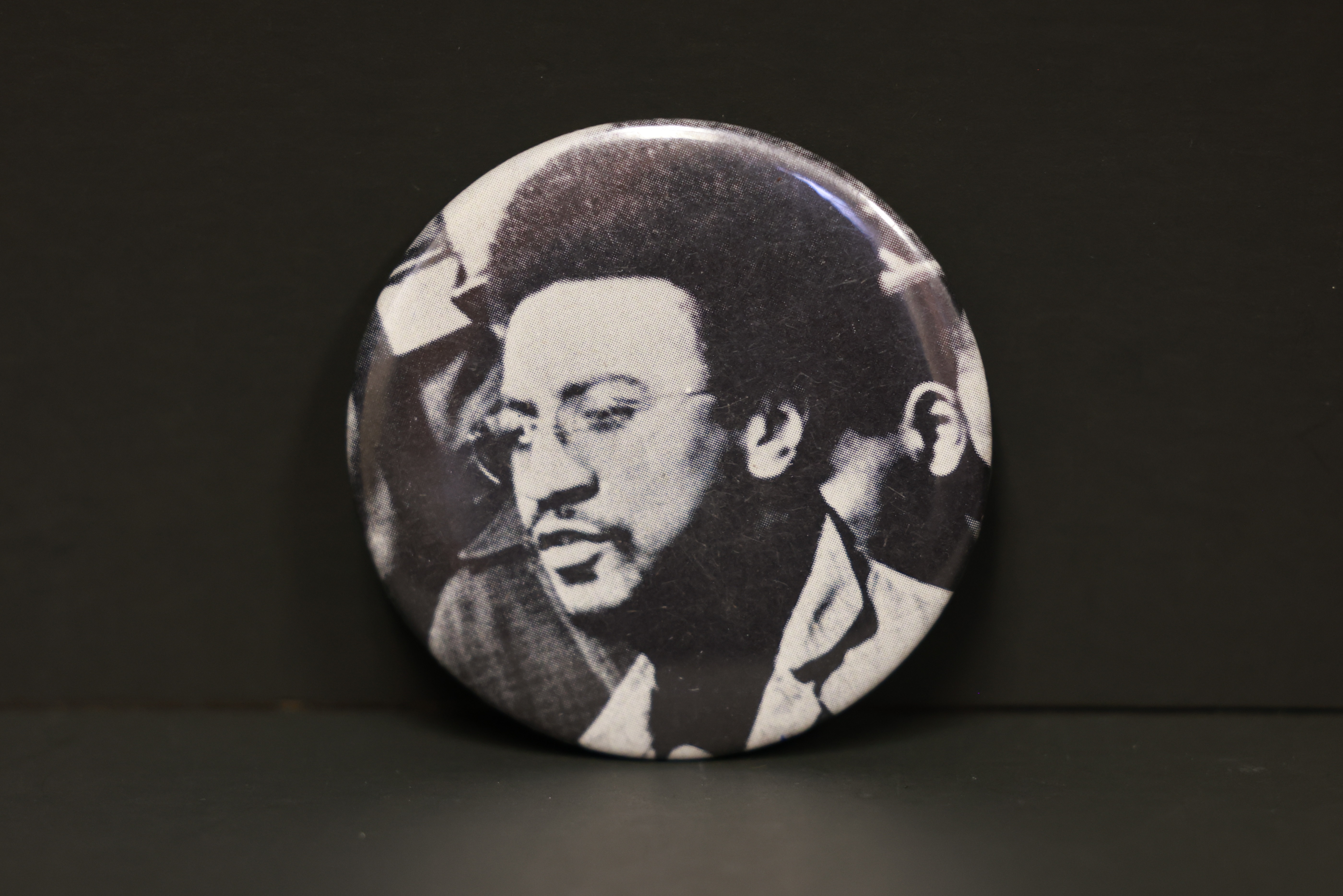 A button with a black and white photo of H. Rap Brown (Jamil Al-Amin). After organizing in Mississippi during Freedom Summer in 1964, H. Rap Brown became chairman of the Student Nonviolent Coordinating Committee (SNCC) in 1967. He continued SNCC’s adoption of Black Power ideologies which began under his predecessor Stokely Carmichael.