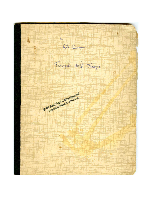 A journal written by Frankye Adam-Johnson (Malika)’s husband, Nuh Abdul Qaiyum, during unknown dates. Nuh Abdul Qaiyum was a former member of the Black Panther Party and Black Liberation Army and was imprisoned in 1975. He writes about a variety of topics, including daily rituals; religions; languages and alphabets; and politics and philosophy.