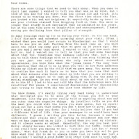 Frankye Adams-Johnson writes to her mother about her childhood, her mother's love, and the effect that it has had on her in life. She questions every event in her life. She is writing to make peace with her mother and everything that has happened.
