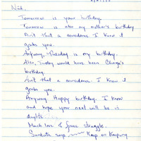 A letter to Nuh Abdul Qaiyum from Martha Pitts wishing him a happy birthday while he is in prison. The letter contains birthday messages from others as well, including Assata Shakur (Joanne Chesimard) and Sundiata Acoli. Both of those birthday wishes were relayed through Martha Pitts, who was a friend and confidant to each of them.