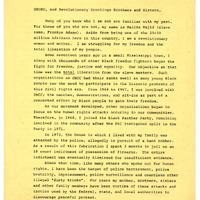 A letter written by Frankye Adams Johnson (Malika) to her supporters, 1980.