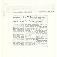Attorneys for 69 Inmates Request Court Order to Obtain Personals, Newspaper Article.
