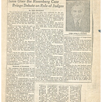 Issue Over the Rosenberg Case Brings Debate on Role of Judges, Newspaper Article.