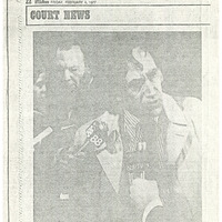 A cover photograph from the Court News Section of the newspaper The Home News featuring members of the defense team for Assata Shakur (JoAnne Chesimard) who was on trial for the 1973 killing of a state trooper. Shakur was convicted in 1977 of killing the state trooper during a shootout, escaped prison in 1979, and is still wanted by the FBI.