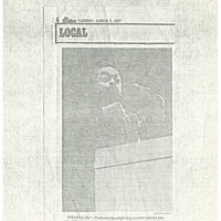 Newspaper Photograph of Amiri Baraka speaking at a benefit for Assata Shakur.
