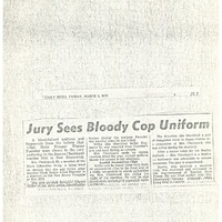 A newspaper from the New Jersey Afro-American about discrepancies in the testimony of trooper James Harper in the trial of Assata Shakur (JoAnne Chesimard) for the 1973 killing of a state trooper. In cross-examination, it was revealed that Harper had not seen Shakur fire the shot that had wounded him even though he had claimed that earlier.