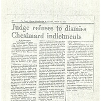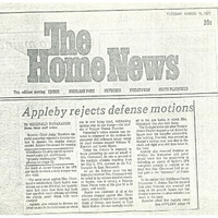 A newspaper article from The Home News about a day long juryless court session where defense lawyers made numerous motions to dismiss the indictments against Assata Shakur (JoAnne Chesimard) who was on trial for the 1973 killing of a state trooper. The judge rejected these motions and the attorneys are scheduled to call witnesses that day.