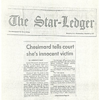 A newspaper article from The New York Times detailing the testimony Assata Shakur (JoAnne Chesimard) gave during her trial for the 1973 killing of a state trooper. In her testimony, she denied shooting anyone, or possessing a firearm, and gave her account of what happened that day.