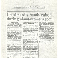 Chesimard's Hands Raised During Shootout-Surgeon, Newspaper Article.