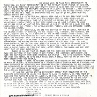 A letter to Algerian president Houari Boumediene from members of the Black Liberation Army (BLA) who had fled to his country from the United States. Melvin McNair, Jean McNair, Larry Burgess, and George Brown hijacked a plane in Miami on July 31, 1972 to seek political asylum in Algeria. The letter talks about their treatment in the country.