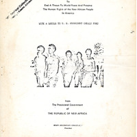 A Collection of Republic of New Africa Documents intended to persuade the United Nations to recognize the Republic of New Africa (RNA). The RNA was founded in 1968 as a Black nationalist and Black separatist movement. The documents include maps of the RNA, a memorandum to the United Nations, and a letter to President Gerald Ford.