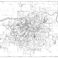 Case Data and Exhibits for Brown III, a relitigation of Brown v. Topeka Board of Education (1954) that corrected resegregation issues caused by open enrollment school choice in 1992. The map depicts the city of Topeka from 1956-1957 and William Lamson hand marked each grade school, junior high school, and high school on the map.