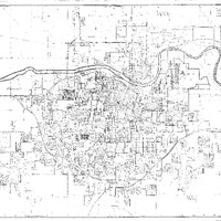 Case Data and Exhibits for Brown III, a relitigation of Brown v. Topeka Board of Education (1954) that corrected resegregation issues caused by open enrollment school choice in 1992. William Lamson handwritten note on top right corner: "1958-9, L.1 & L.16" with several structures on the map hand marked by Lamson.