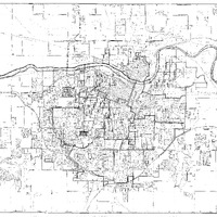 Case Data and Exhibits for Brown III, a relitigation of Brown v. Topeka Board of Education (1954) that corrected resegregation issues caused by open enrollment school choice in 1992. The map depicts the city of Topeka from 1971-1972 and includes markers by William Lamson marking several structures and a handwritten note that says “No Change.”