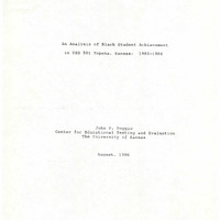 An Analysis of Black Student Achievement in USD 501 Topeka, Kansas: 1980-1986, August 1986.