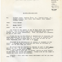 Memorandum from Chris Hansen of the ACLU to William Lamson, et. al. Concerning the Brown Appeal, May 20, 1987.