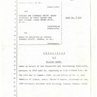 Case Data and Exhibits for Brown III, a relitigation of Brown v. Topeka Board of Education (1954) that corrected resegregation issues caused by open enrollment school choice in 1992. Transcript of Defense Witness William Clark being deposed by ACLU attorney Chris Hansen. Clark was acting as an expert demographic witness for the defense.
