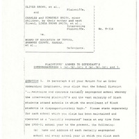 Case Data and Exhibits for Brown III, a relitigation of Brown v. Topeka Board of Education (1954) that corrected resegregation issues caused by open enrollment school choice in 1992. Document from the plaintiff attorneys to the defense in response to questions from the defense about which Topeka schools were segregated since 1950.