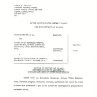 Case Data and Exhibits for Brown III, a relitigation of Brown v. Topeka Board of Education (1954) that corrected resegregation issues caused by open enrollment school choice in 1992. A motion from the defense team requesting that the ten additional defendants listed in the motion be allowed to assist in answering plaintiff interrogatories.