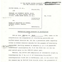 Case Data and Exhibits for Brown III, a relitigation of Brown v. Topeka Board of Education (1954) that corrected resegregation issues caused by open enrollment school choice in 1992. This court order places limitations on some of the documents requested by the defense due to redundancy and personal information that is included in some records.