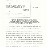 Case Data and Exhibits for Brown III, a relitigation of Brown v. Topeka Board of Education (1954) that corrected resegregation issues caused by open enrollment school choice in 1992. In this position statement, the defense argues that certain requests for documents from the plaintiff team are “unduly burdensome” because of time constraints.