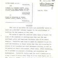Case Data and Exhibits for Brown III, a relitigation of Brown v. Topeka Board of Education (1954) that corrected resegregation issues caused by open enrollment school choice in 1992. Court order from United States District Judge Richard D. Rogers granting the plaintiff request to increase the scope of the case and alter the trial opening dates.