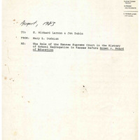 An Essay Titled The Role of the Kansas Supreme Court in the History of School Desegregation in Kansas before Brown v. Board of Education With a Cover Letter from Mary L. Dudziak of the ACLU, August 1983.